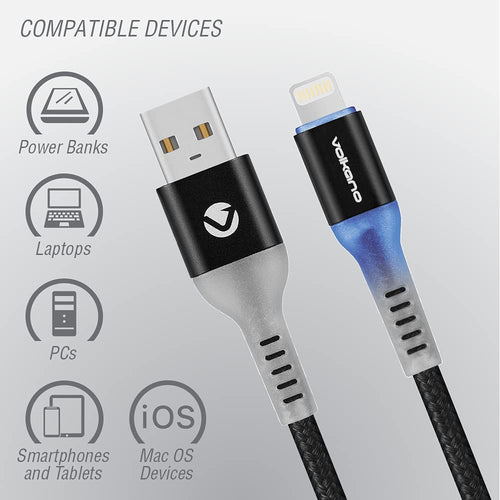 Volkano 6 Ft / 1.8 m Auto-Disconnect iPhone Lightning Cable, LED Indicator Light, Braided Nylon Adapter Cord, High-Speed Charging Capacity Data Transfer Charger, Sleek Stylish Design - Smart Series