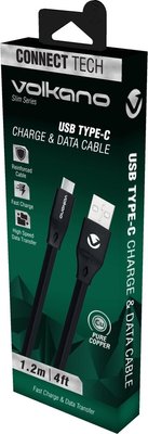 Volkano Slim Series Type-C USB Flat Cable - Black - 1.2m