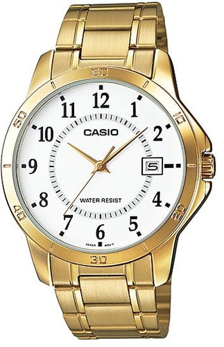 Casio MTP-V004G-7B2 Men's Dress Gold Tone Stainless Steel Silver Dial Analog Dat