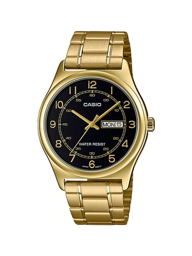 Casio MTP-V006G-1B Men's Gold Tone Easy Reader Black Dial Day Date Analog Watch